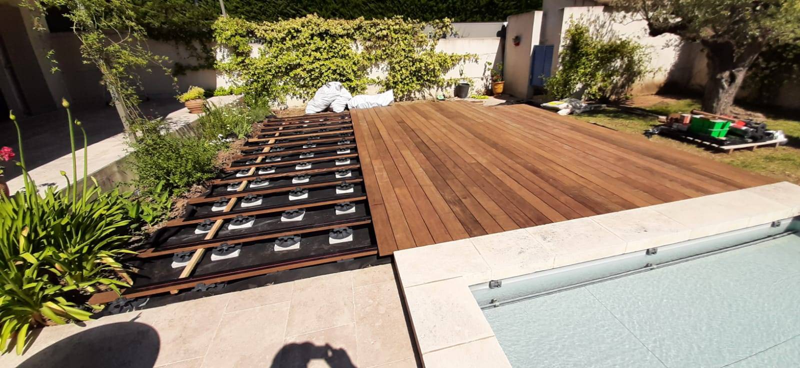 Nos terrasses sont disponibles en pose sur plots réglables ou sur dalle béton, en fonction des contraintes de votre terrain. Par exemple, un client de Bagnols-sur-Cèze a choisi une terrasse en bois exotique de 60 m² posée sur plots réglables, qui a permis un ajustement parfait sur son, tout en offrant une finition élégante et durable. Ce type de terrasse sur plots réglables est particulièrement apprécié à Bagnols-sur-Cèze pour ses nombreux avantages pratiques et esthétiques.