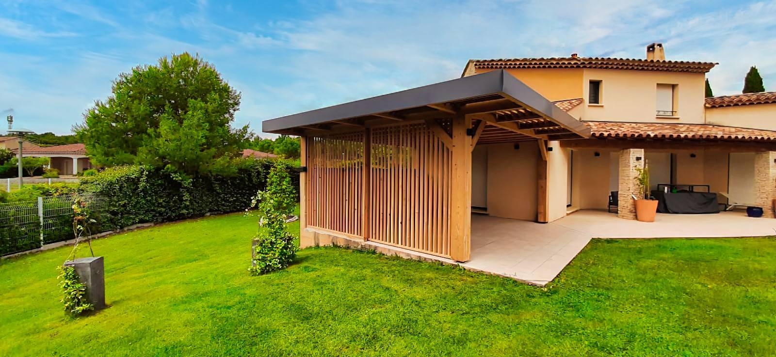 Les Ateliers du Cèdre, basés à Mallemort, sont concepteurs de charpentes et structures en bois sur mesure dans les Bouches-du-Rhône. Récemment, nous avons réalisé un abri toit plat avec sa casquette brise-soleil et son claustra amovible de 25 m² sur mesure à Saumane, un projet qui met en avant notre savoir-faire.