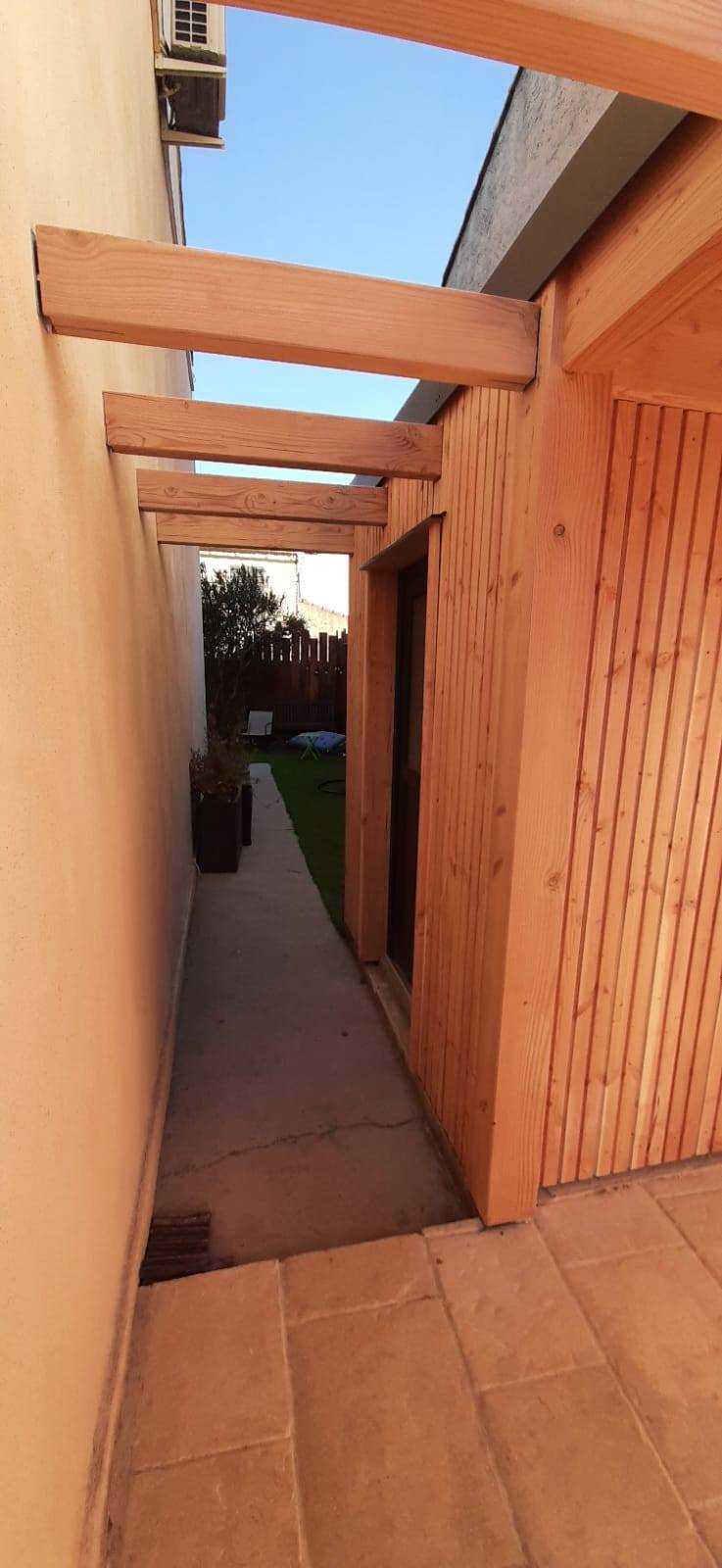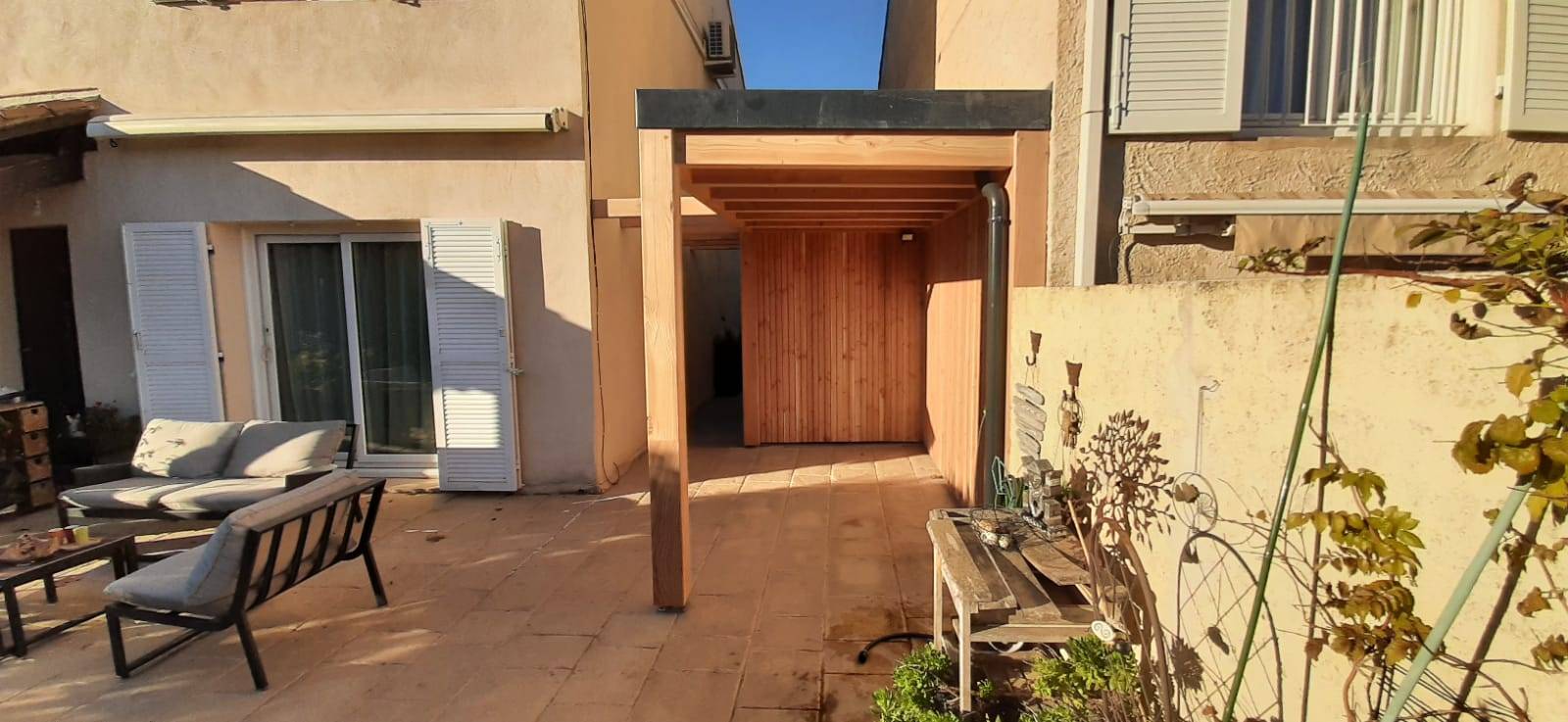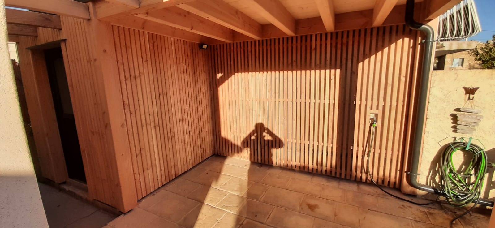 Les Ateliers du Cèdre ont assuré la réalisation et pose d'un abri toit plat sur la commune de Salon de Provence. Ils interviennent également pour la réalisation d'une petite pergola en connexion avec l'existant, ainsi que pour la mise en place d’un claustra vertical, toujours dans le respect du projet initial.
