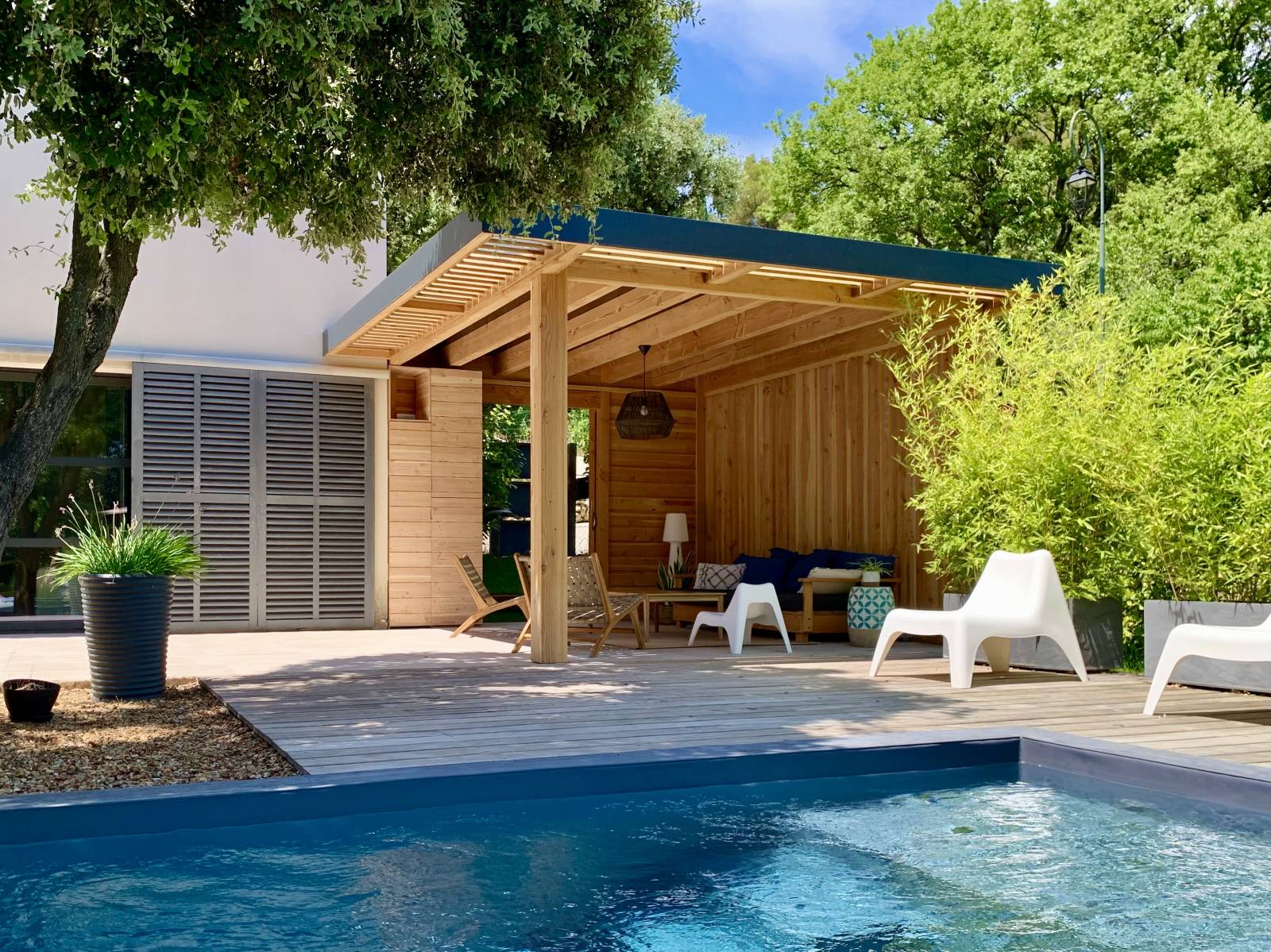 Vous rêvez d’un espace extérieur élégant et pratique pour profiter pleinement de votre piscine à Montpellier ? Les Ateliers du Cèdre, artisans charpentiers basés dans les Bouches-du-Rhône, vous proposent la création de pool houses sur mesure, avec toit plat et claustras amovibles, pour un espace à la fois fonctionnel et esthétique.